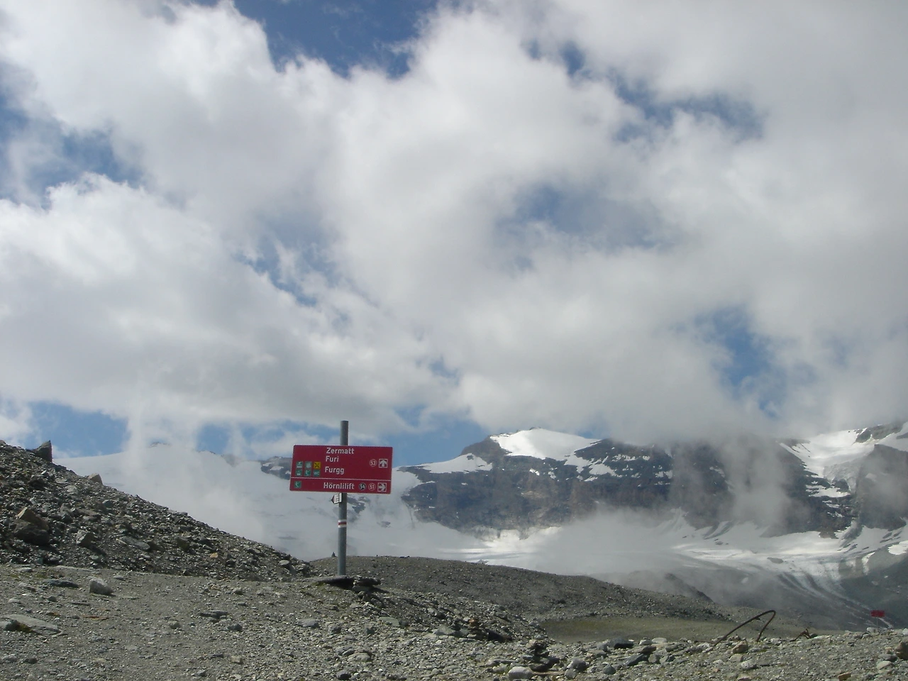 Zermatt: 회른리 산장 가는 길에 만난 이정표, 2007
