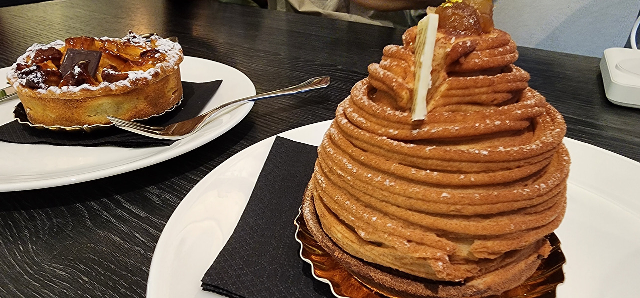 우리는 샤모니에서 피날레로 또다른 몽블랑을 만난다. 밤맛 나는 몽블랑 케이크는 몽블랑으로 마주한 프랑스와 이탈리아의 대표적인 디저트 중 하나란다. 케이크 위에 하얗게 뿌려진 슈가 파우더가 하얀 산이라는 의미의 몽블랑 같다고 하여 붙여진 이름이라고 한다.