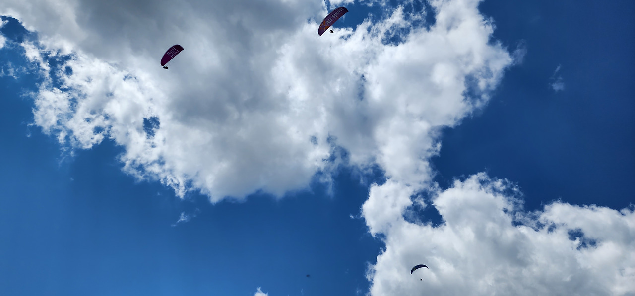 알고 있는 페러글라이딩은 언덕 위에서 두두두 내리 달리다가 부웅 나는 느낌이었다. 여기에선 제자리 뛰기 두어 번에 그대로 하늘로 솟아오른다.