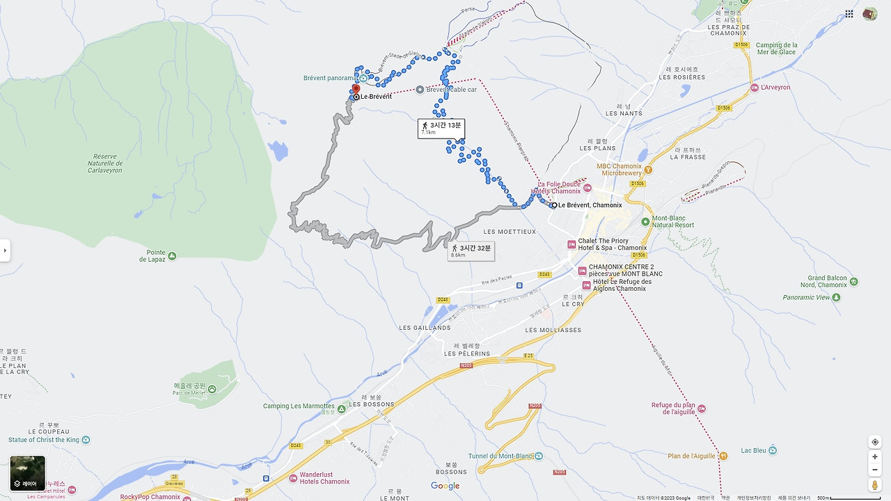 Google Map: 브레방을 걸어서 오르고 싶다면?