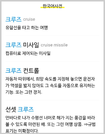 영어 'cruise'의 어원은 라틴어, 네덜란드어에서 유래되었다고 한다.