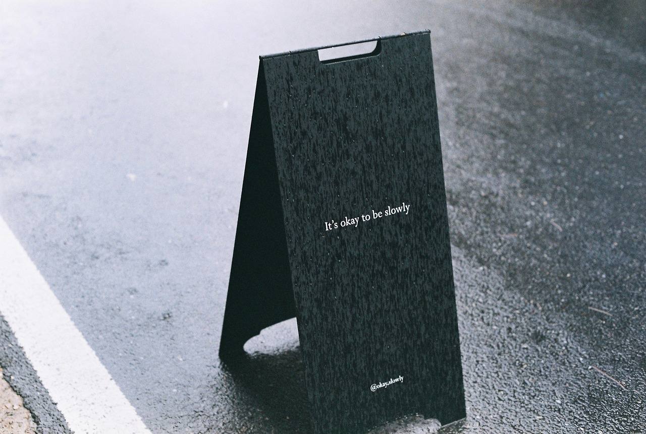 공간의 오픈과 마감을 알리는 검은색 철제 입간판은 스무 해 넘게 간판을 만들고 계신 아버지가 만들어 주셨다. 양손으로 쥐고 옮겨야 하는 묵직한 입간판을 펴고 접을 때마다 고향에서 묵묵히 일하시는 부모님을 생각하며 마음을 다잡게 된다.