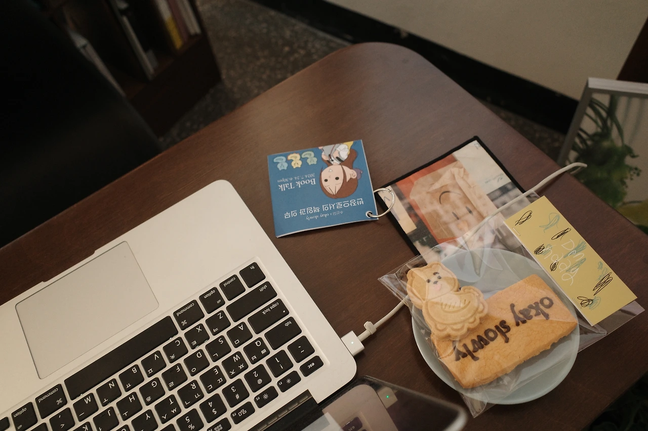 북토크를 준비하면서 이번에는 만화 속 캐릭터로 쿠키를 만들어 보면 어떨까 하는 생각이 들어 1편에서 아랑과 연두, 은이 나눠 가진 키링 중 4편의 주인공인 하은의 키링으로 쿠키틀을 제작했다. 쿠키 제작은 근처에 위치한 카페에 의뢰했는데 며칠 동안 테스트하면서 마지막까지 분투하여 만들어 주신 덕분에 말랑말랑 귀여운 쿠키를 선물할 수 있었다. (제작상 어려움으로 어쩌다 보니 눈썹이 하나가 된 것도 귀여움 포인트)