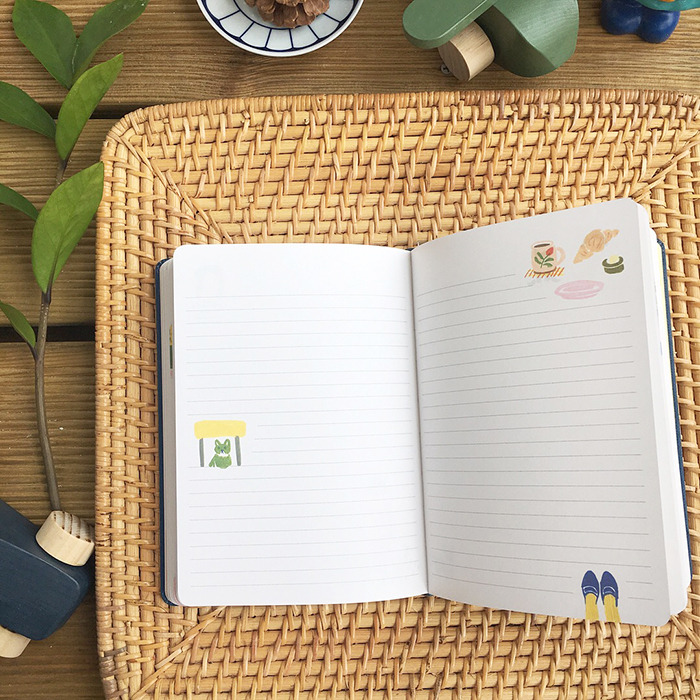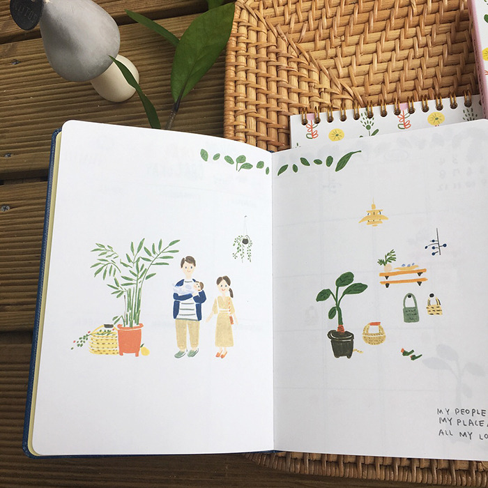 만년 다이어리로 이얼리-먼슬리-위클리-먼슬리-위클리 순으로 12달, 그리고 유선노트와 무선 노트, 체크리스트 등으로 구성되어있다. 페이지마다 모두 다른 그림들. 나만 아는 지극히 사적인 이야기들.