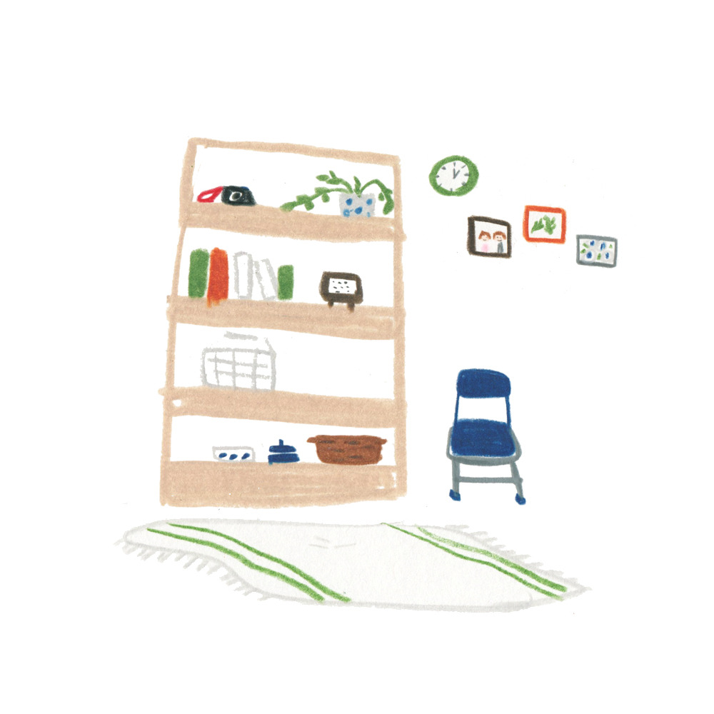 저어기- 분홍 책장을 자세히 보면 그림책 <티나의 양말>도 살포시 올려놓았다.
