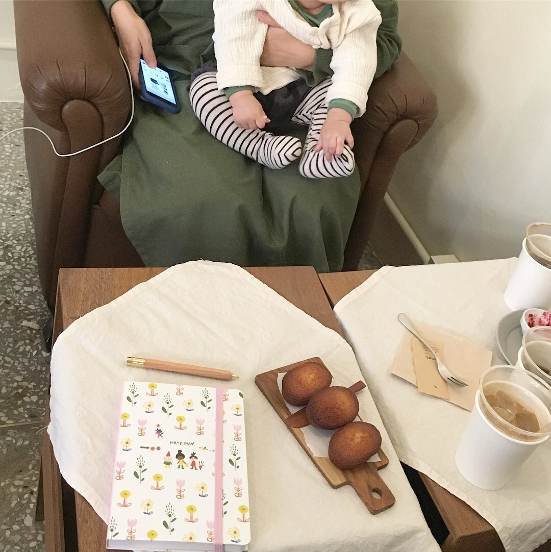 친구랑 동네 마실 갈 때도 다이어리 들고 갔다. 물론 아기 망고도 함께. 겨울 아기 망고가 이제 제법 커서 유모차 없이 이렇게 카페에도 같이 간다.