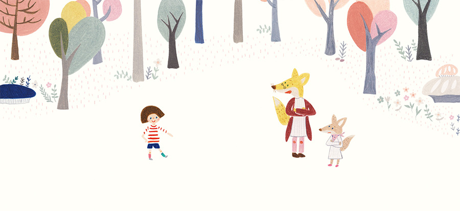 그림책 <티나의 양말>에서 티나가 모모 아줌마를 만나는 장면.