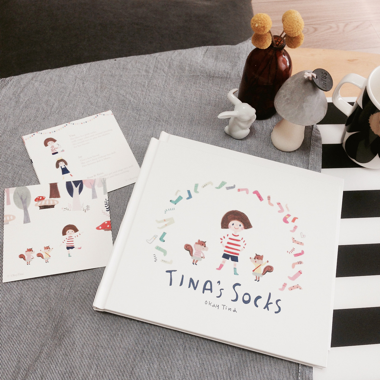 <티나의 양말>은 재작년 가을에 처음 기획하고 준비해서, 작년 봄 더미(책이 출간되기 전에 책의 형태로 묶어 놓은 거)를 들고 이탈리아에서 하는 볼로냐 아동 도서전(Bologna Childeren's Book Fair 2015)에 참여하였다. 감사하게도 볼로냐에서 좋은 출판사들과 인연이 닿았고, 오랫동안 짝사랑 해왔던 프랑스 출판사 hélium과 첫 계약을 하게 되었다. (덤덤하게 얘기했지만, 사실 평생운을 다 써버린 건 아닌지 걱정될 정도로 기뻤던 일) 그다음으로 국내 출판사와 계약을 하였는데, 출간일은 국내가 더 빨라서 작년 가을 국내에 먼저 나오게 되었다.