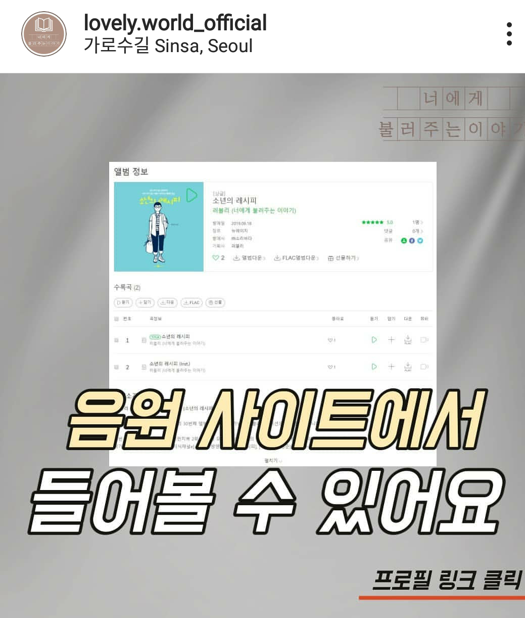 음원 사이트 http://instabio.cc/lovelyworld