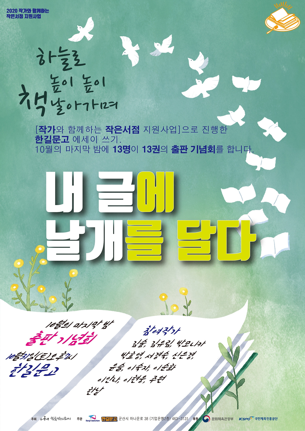 며칠 동안이나 출간의 기쁨과 부담 사이를 오가던 사람들은 열한 명에서 열다섯 명으로 늘었다가 열세 명으로 줄어들었다. 첫 책을 내겠다고 단단히 마음먹은 사람들은 ‘내 글에 날개를 달다’라는 출판기념포스터에 넣을 실명과 필명 사이에서 또 고민했다.