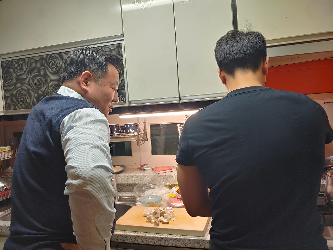 고등학교 다닐 때부터 아부지 해장국을 끓여주고 등교했던 강제규. 오늘 밤에는 운동 갔다 와서 바로 부엌으로 갔다. 원래는 씻고 바로 여자친구 만나러 가는데.