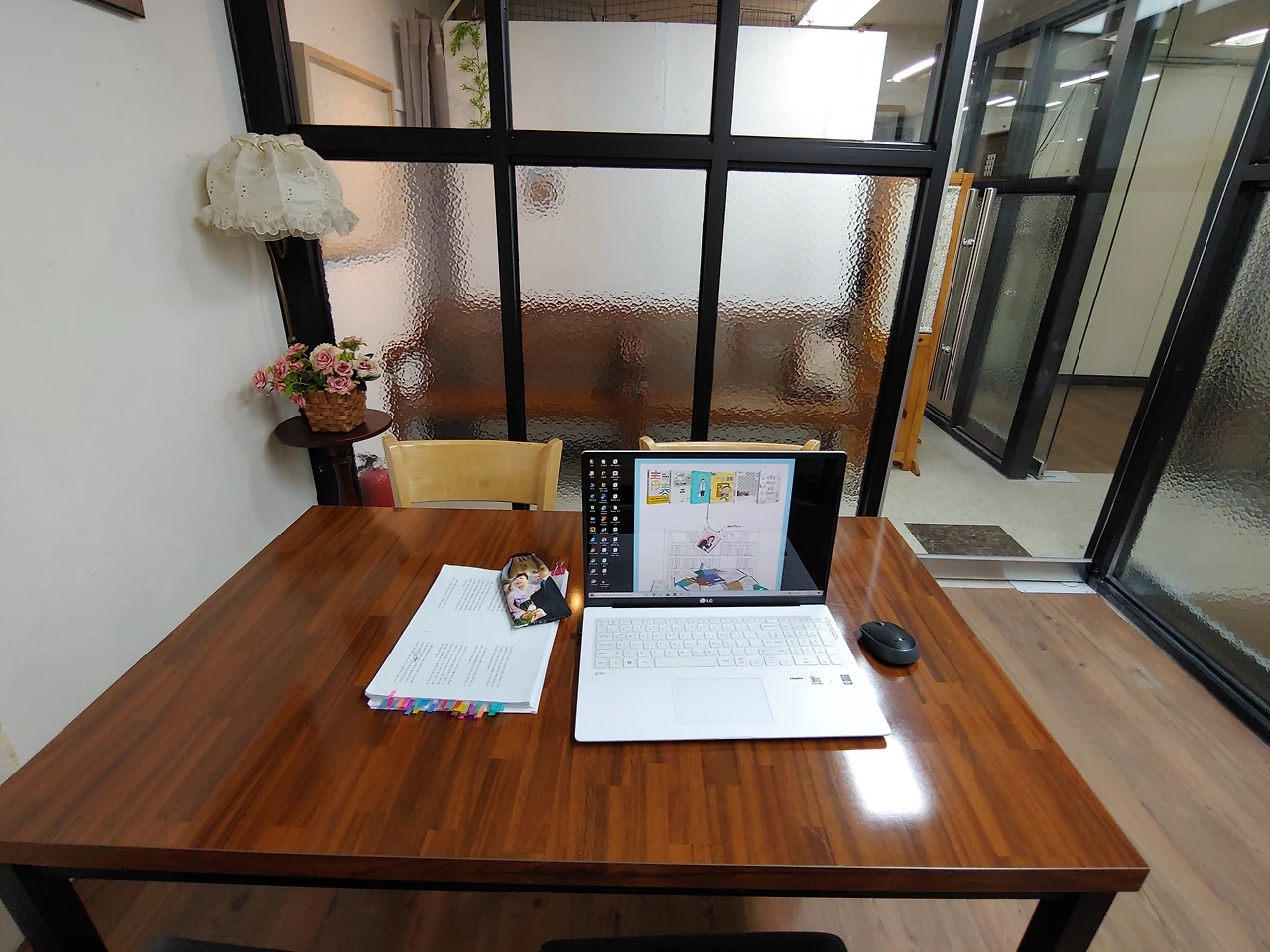 저는 주로 서점 들어오면 바로 보이는 카페에서 일했어요. 이제는 서점 출입구에서 제 방까지 한참을 걸어가야 해요. 점장님한테 소나무 심지 말고 모노레일 깔아달라고 해야겠네요. 너무 멀잖아요.