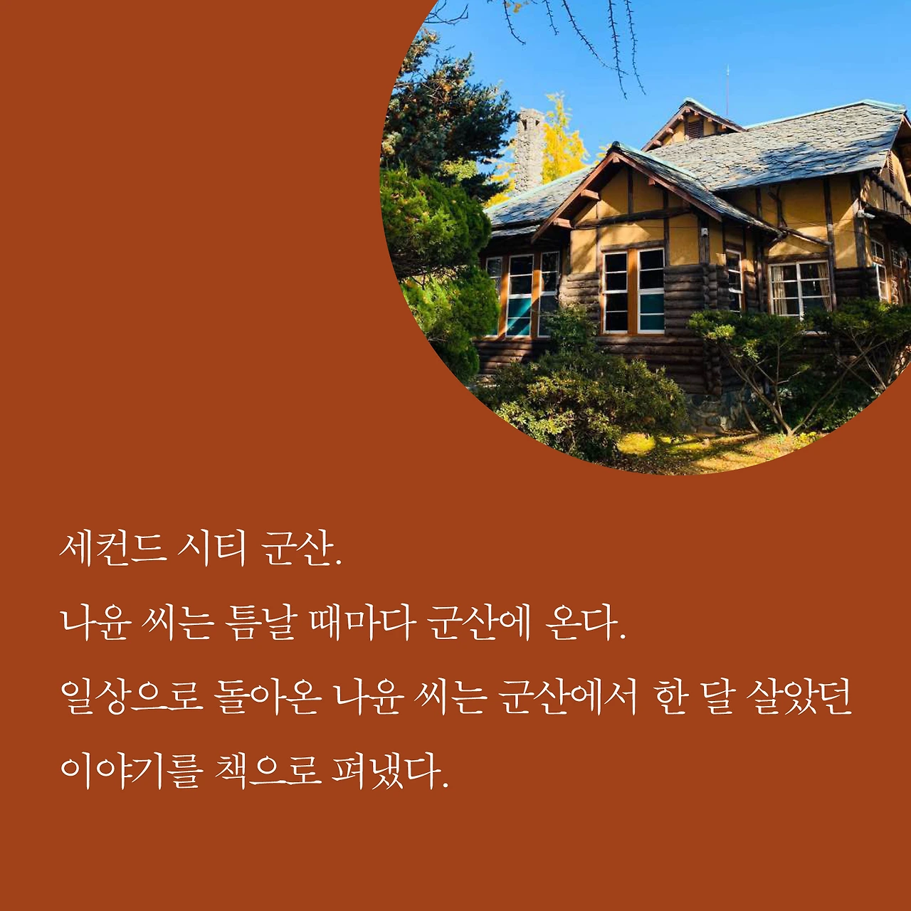 <다녀왔습니다, 한 달 살기> 132P에서 145P에 나오는 권나윤씨는 심윤경 작가님의 팬이죠. 원래는 벚꽃 피면 군산에서 한 달 살기를 하려다가 2019년 11월에 심윤경 작가님이 군산에서 강연 하신다니까 급하게 계획을 앞당겼지요.