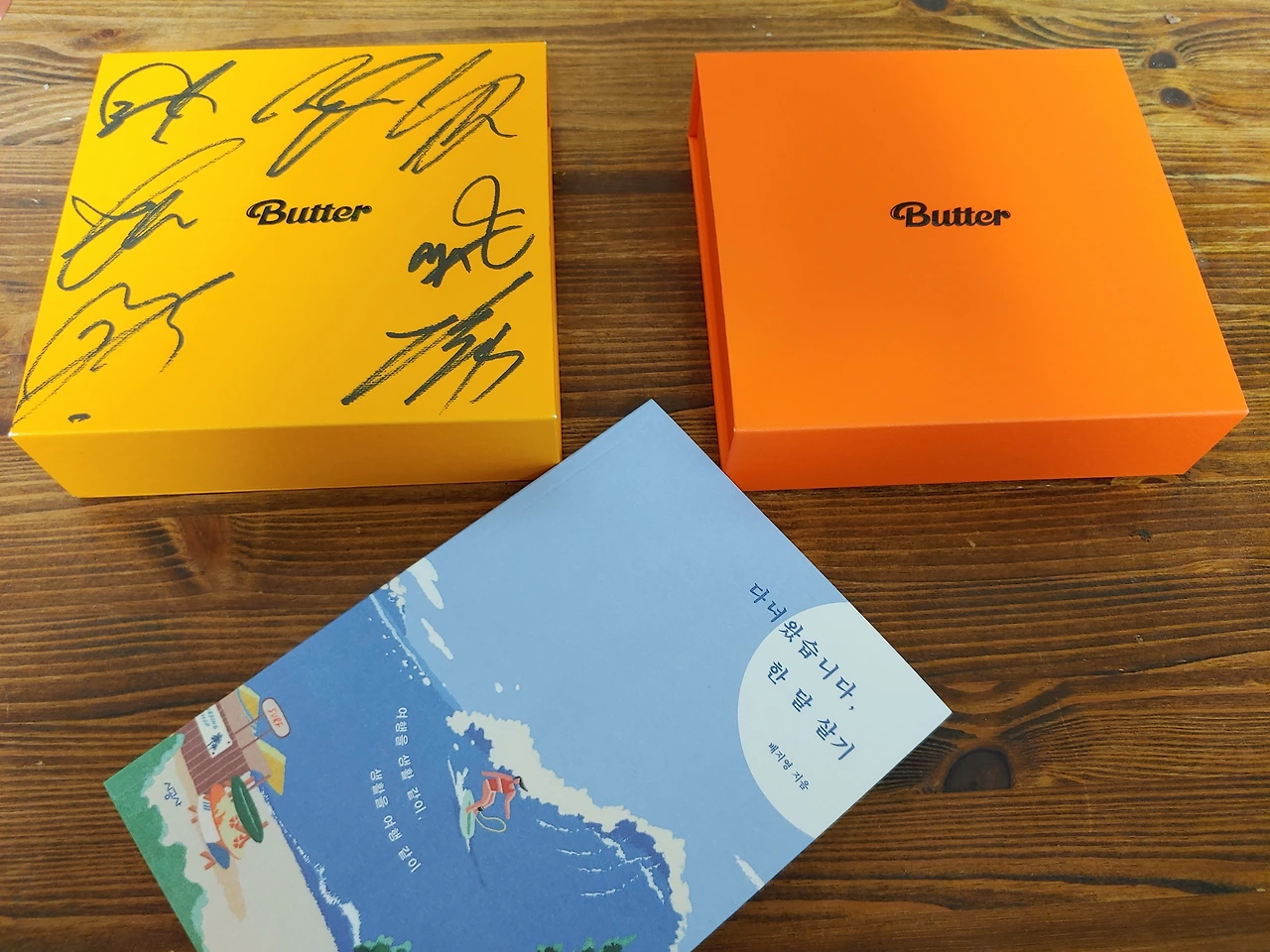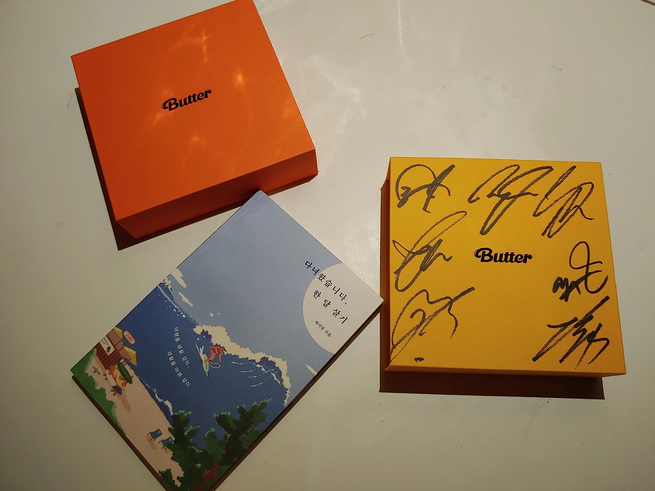 방탄 앨범에, 방탄 친필 사인 앨범까지 책상 위에 올려놓고 눈물 범벅 되어 기쁨을 표현했습니다. 아름다운 밤입니다. 책 사주셔서 고맙습니다.