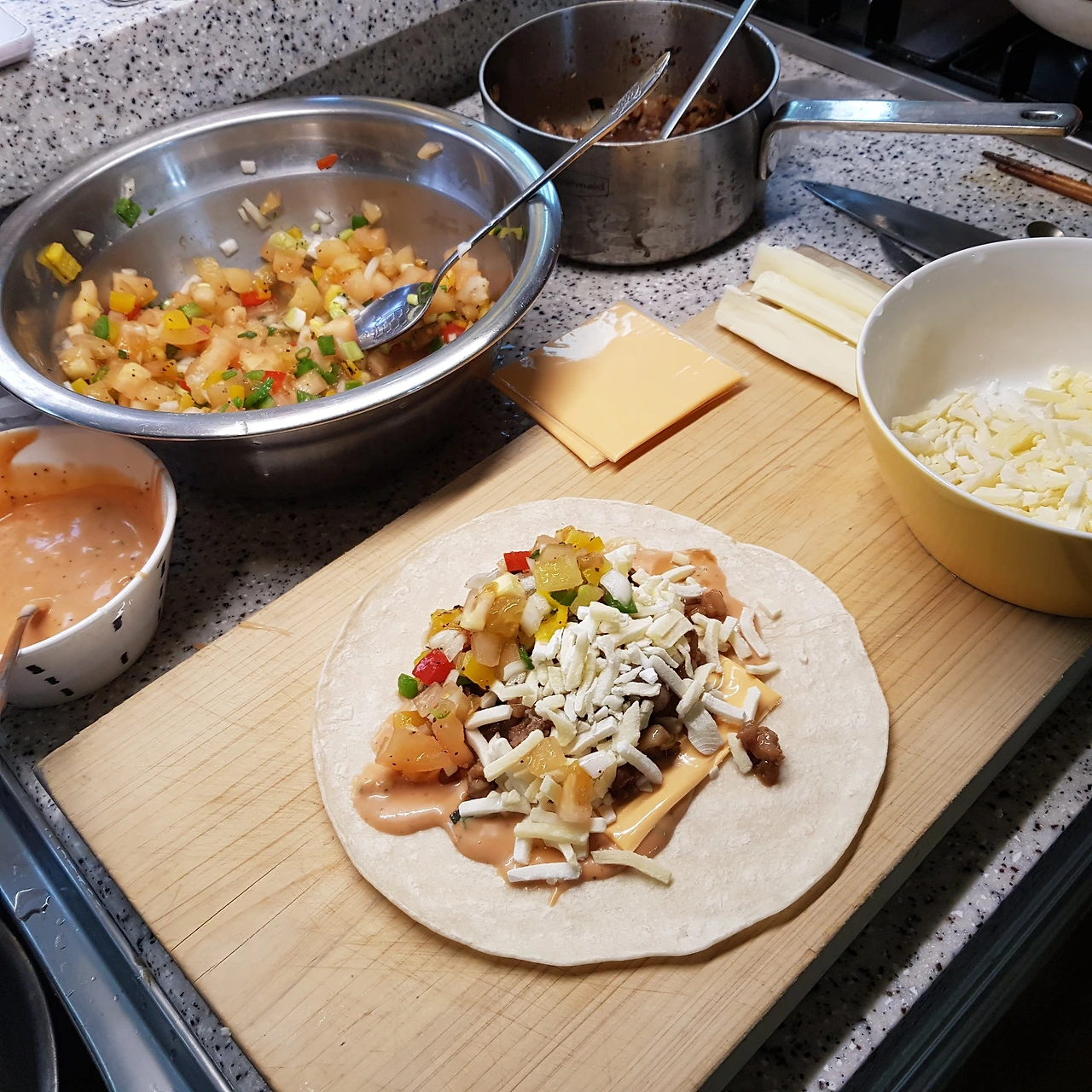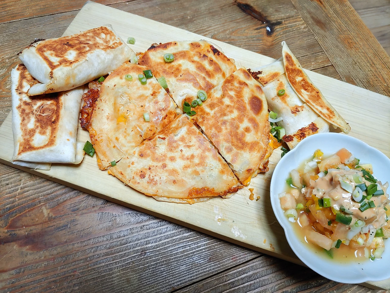 3월에 복학하는 제규는 2주 전에 대전 가서 원룸을 계약하고 왔다. 오늘은 대전 갈 짐을 싸면서 치킨 퀘사디아와 부리또를 해줬다. 강썬은 피자 만들어달라고 했는데... 도우 만들기 귀찮다면서 대신 해준 음식이다.