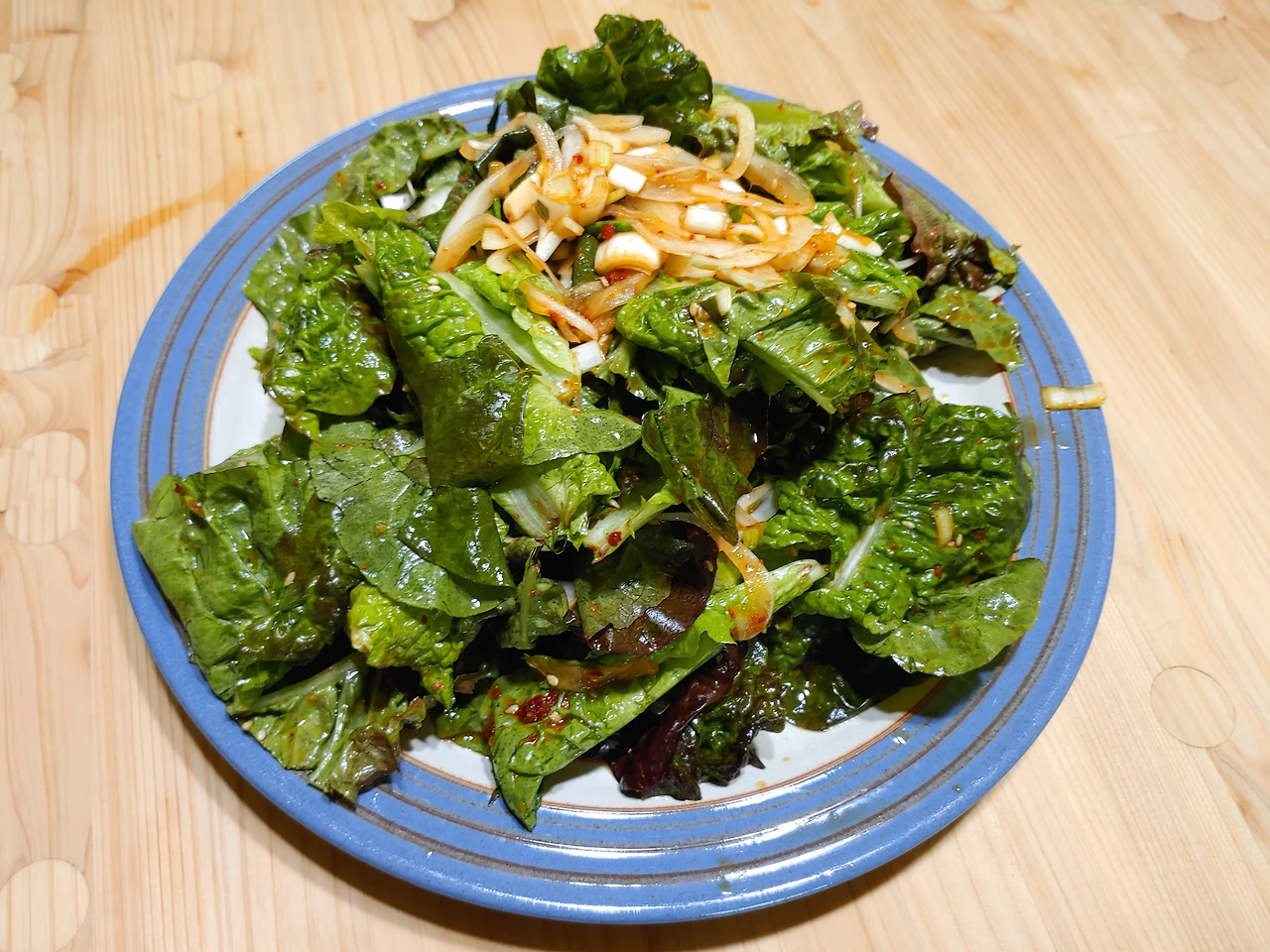 “강썬도 없는데, 간단하게 먹자. 어제 남은 상추 겉절이 먹을게.”