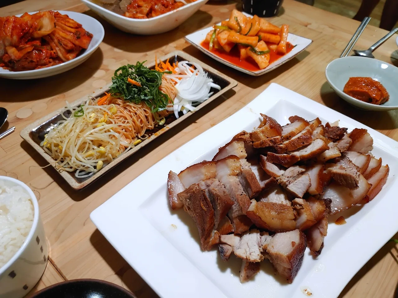 신의 계시가 들리지는 않았다. “저 왔어요.” 뜻하지 않게 강제규 목소리를 들었다. 저번에 내가 지나가는 말로 묵사발 맛있겠다고 했는데, 그거 해주겠단다. 강썬과 아버지가 좋아하는, 겉은 바삭바삭하게 태우고 속은 탱글탱글한 수육과 살 안 찌게 콩나물 많이 들어간 비빔국수도 만들었다. 강제규는 설거지하고 음쓰 버리고서 친구 만나러 나갔다