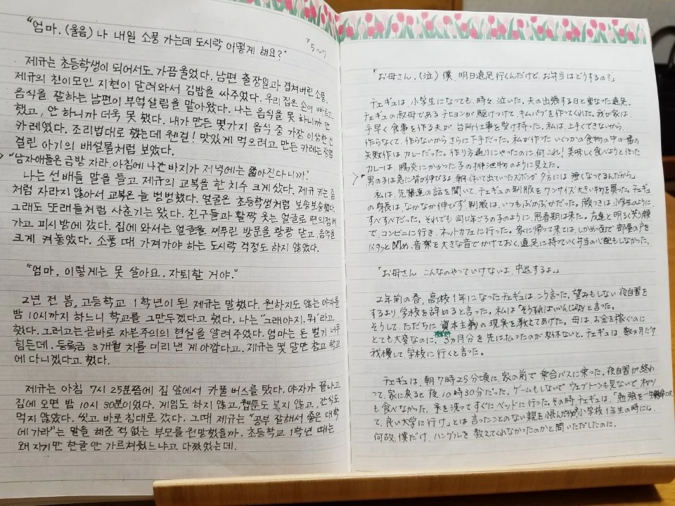 2017년 여름, ‘우리 동완씨’ 콘서트를 보고 돌아가던 기쿠치 미유키씨는 인천국제공항 서점에서 <소년의 레시피>를 샀다. 직장에 1시간 일찍 출근해서 한국어를 공부하는 미유키씨는 <소년의 레시피>를 한글로 쓰고 다시 일본어로 번역했다. 덕분에 나는 미유키씨와 인스타그램에서 친구 먹었다.