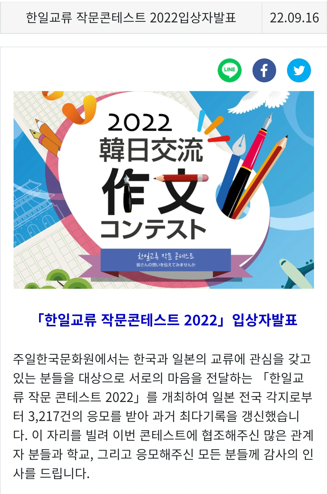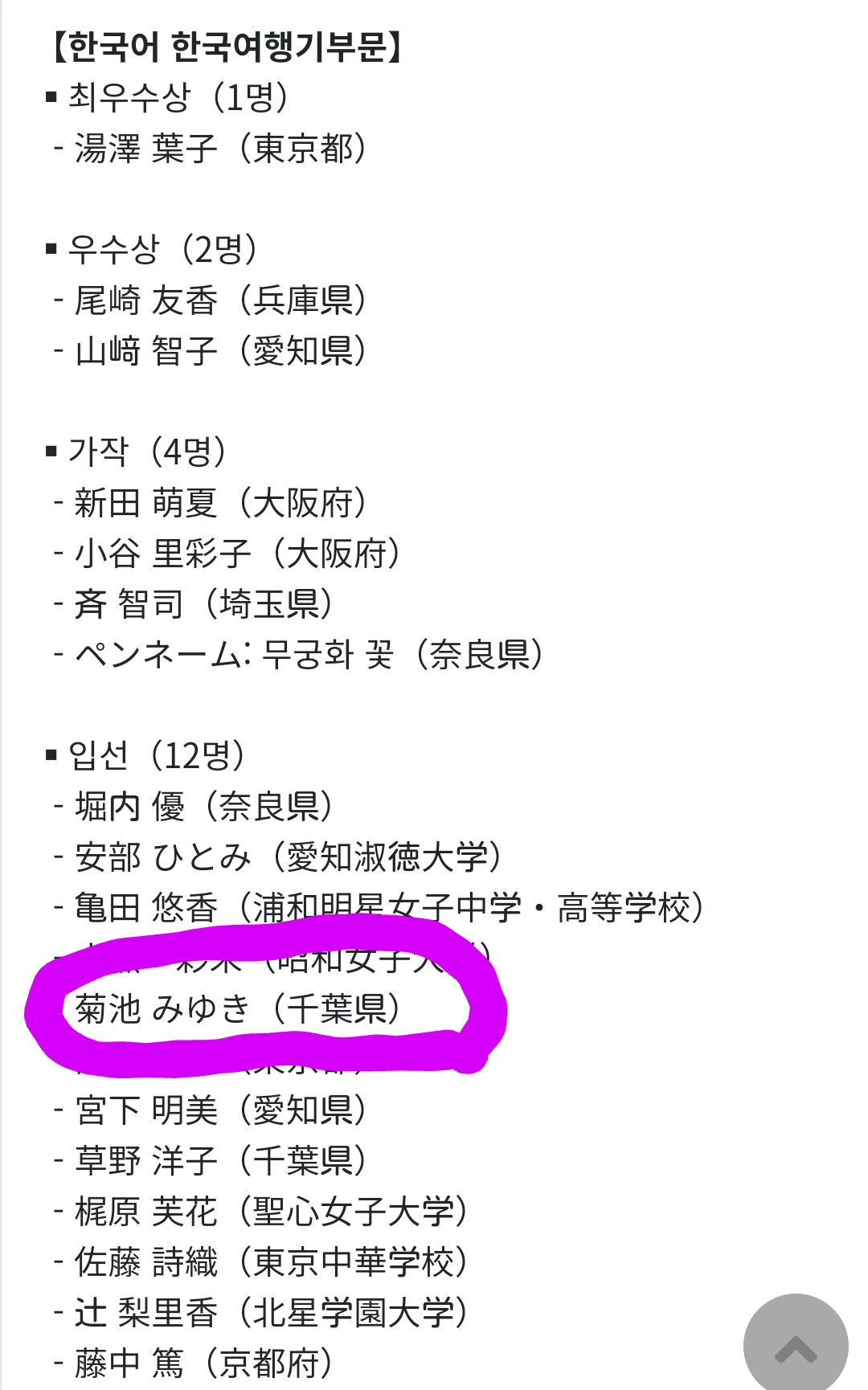 그리고 2022년 9월, 주일한국문화원에서 주최한 <한일교류 작문콘테스트 2022>에서 미유키씨 글은 ‘한국어 한국여행기 부문’에서 입선했다. <한 권의 책에서 시작된 군산행>, 미유키씨가 쓴 글의 제목이다.
