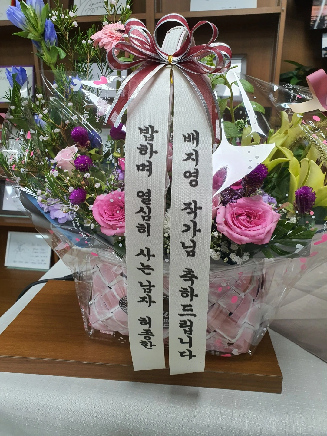 ‘밥하며 열심히 사는 남자 허종한’님과 ‘선일스틸 이주희 철강사업본부장’님도 꽃을 보내셨어요. 저도 지치네요. 두 분은 강성옥 씨가 따로 화장실 뒤로 오라고 할 거예요.ㅋㅋㅋㅋ