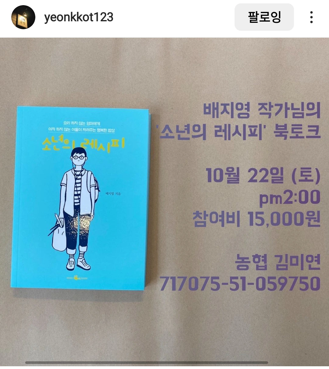 이야기 주제는 ‘좋아하는 일을 하고 싶다면’, <소년의 레시피>로 해요. 소년은 청년이 되어 자기만의 인생 레시피를 써나가고 있고요, 세상에 나온 지 5년 넘은 책도 빛을 잃지 않고 여전히 독자들에게 닿고 있습니다.
