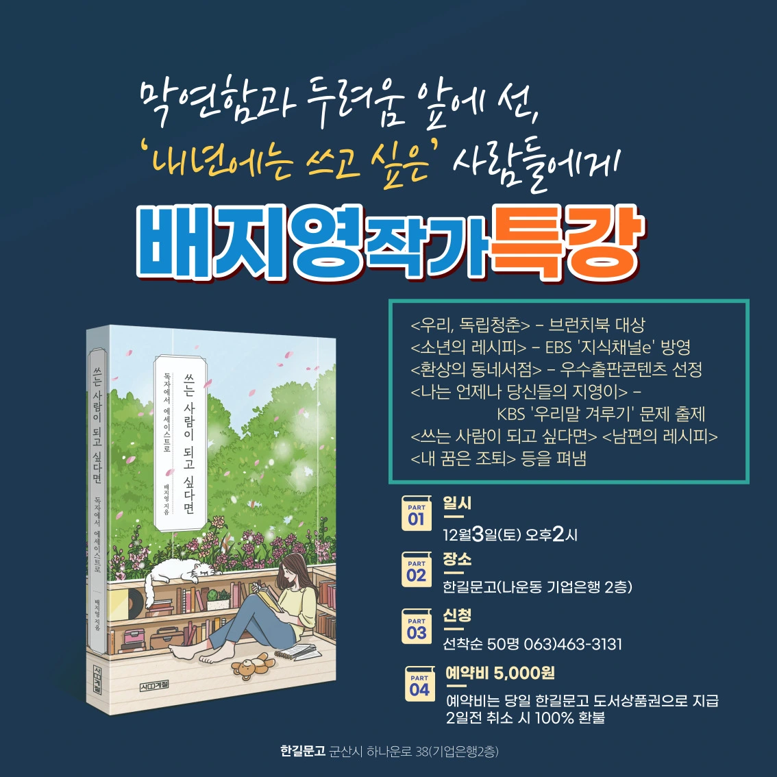 12월 3일 토요일 오후 2시에 한길문고에서 글쓰기 강의합니다.