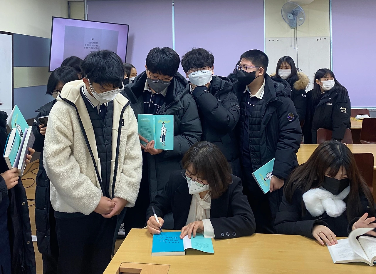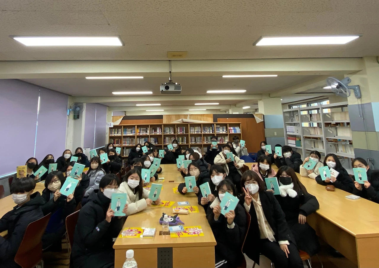 초대해주신 홍자희 선생님은 3학년들에게 <쓰는 사람이 되고 싶다면>을 나눠주셨다. 1학년부터 3학년 도서부에게는 <소년의 레시피>를 읽게 하고 질문지를 나눠주셨다.
