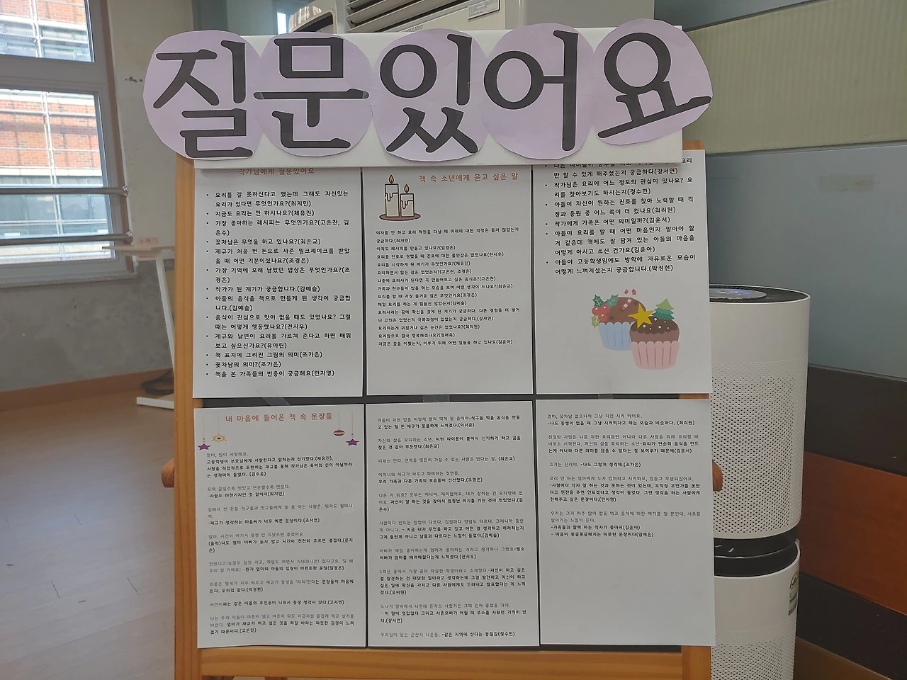 각 문항마다 학생들의 질문은 20여 개씩 있었다. 출력해서 읽다가 학생들 마음이 막 느껴져서 눈물이 터졌다. 하지만 학생들 앞에서는 의연했지요.ㅋㅋㅋㅋ