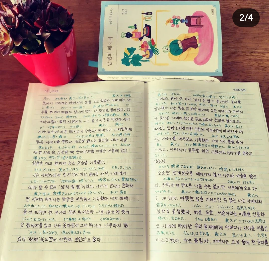 계단에서 썰매 타듯 미끄러지는 바람에 와식 생활 이틀 차. 목표한 만큼 걷고 <남편의 레시피>를 한국어와 일본어로 쓴 미유키 씨의 인스타를 누워서 보았다. 하트를 눌렀을 뿐인데 나한테 드라마틱한 변화가 일어났다. 왼쪽 허리와 엉덩이가 하나도 아프지 않고 달릴 수 있을 정도로 쾌유되었다. ㅋㅋㅋㅋㅋ