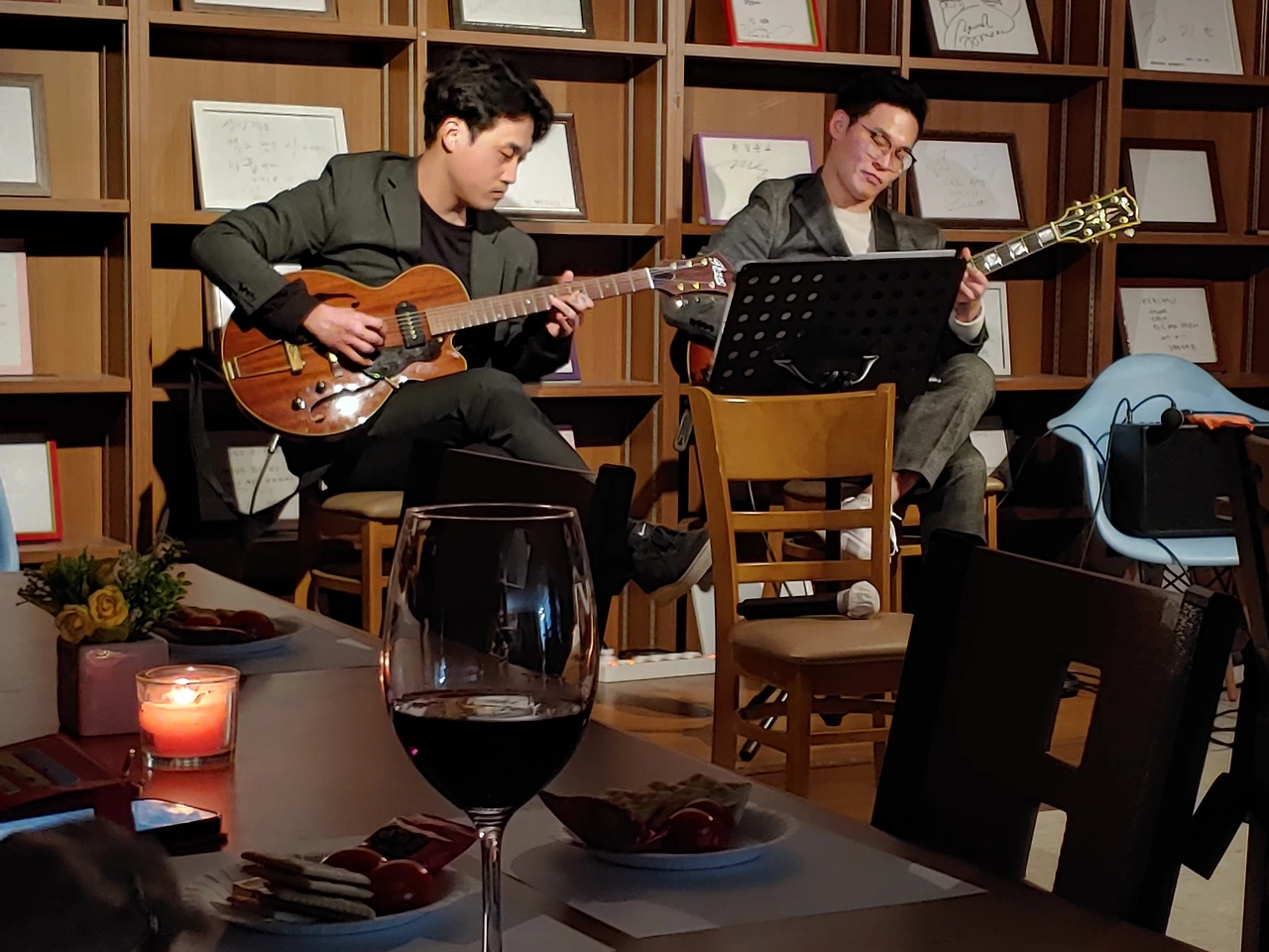 정민석 기타리스트와 강경규 기타리스트는 첫 번째 곡 연주하고 나서 관객의 수준을 딱 알아챘다. 연주 끝났을 때만 박수치는 거 아니라고. 기타리스트가 즉흥적인(?) 솔로 연주할 때도 박수 칠 타이밍이라며 ‘짬바’에서 나온 유머로 알려줬다. 또 우리가 한길문고를 사랑하는 사람들답게 학습 속도가 엄청 빨라서 그 뒤로는 박수 치는 타이밍을 놓치지 않았다, 는 아니지만.ㅋㅋㅋ