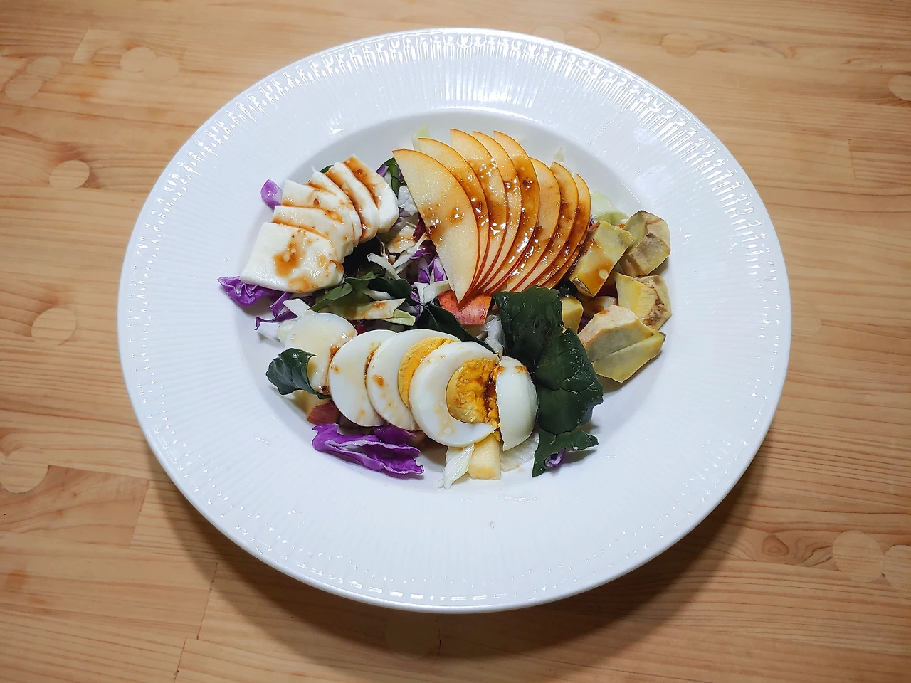 아니면 두유에 삶은 달걀 고구마 먹고도 이것저것 많이 들어간 샐러드를 먹어야 한다.