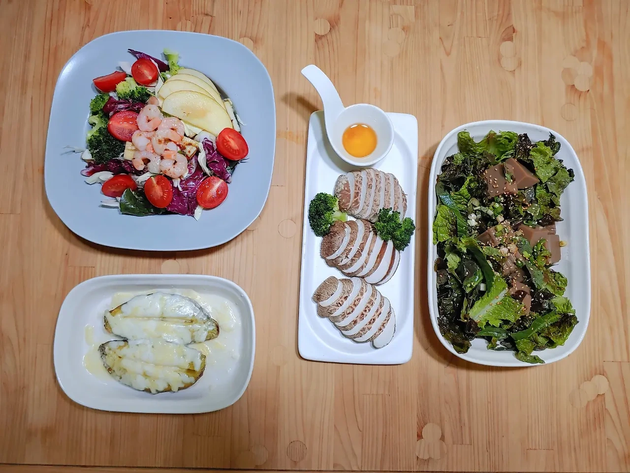 북토크는 다가오고 몸무게는 하나도 줄지 않은 3월 25일 밤. 나는 단식으로 저항할 결심을 했다. 강성옥 씨는 나보고 안심하라며 ‘철저한’ 다이어트 식단을 차렸다. 샐러드, 표고버섯, 묵무침.