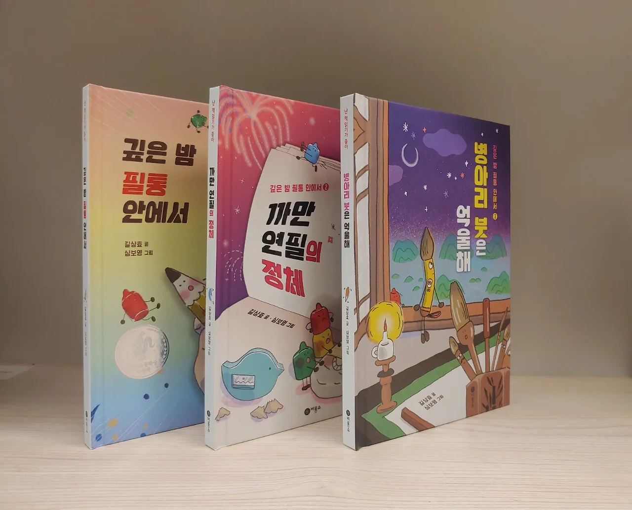 어제 아침에 세 권을 나란히 세워두고 읽다가 연필 주인 박담 어린이에게 빠지고 말았다. ‘그래도 즐거운 하루였다.’로 일기를 마무리하고, 공부는 잘 하지 않고, 책가방도 닥쳐서 싸고 그러는데 자기 필통은 엄청나게 잘 챙긴다. 물건은 주인 닮는다고, 자기 물건을 잘 챙기는 야무진 박담 어린이를 닮은 연필들이 자기 이야기를 책으로 만들어낸 거다.