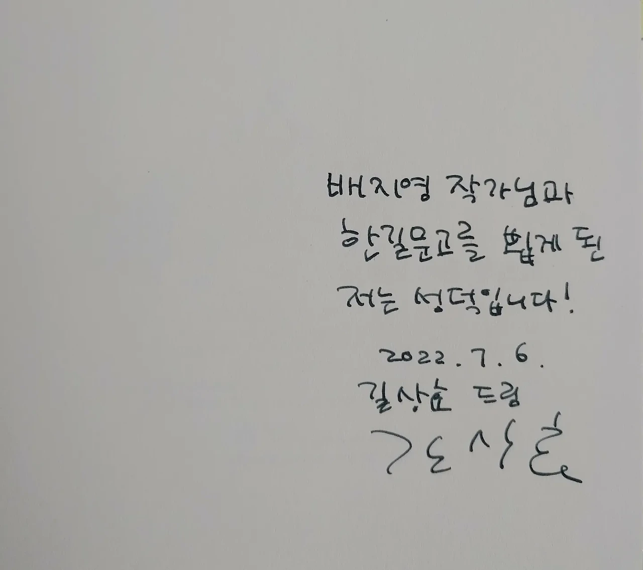 작가님의 친필사인을 들여다보면서 정말 얼떨떨했다. 길상효 작가님과 헤어지고 나서야 오한이 들었다. 아니 저를 어떻게 알고 오신 건가요.