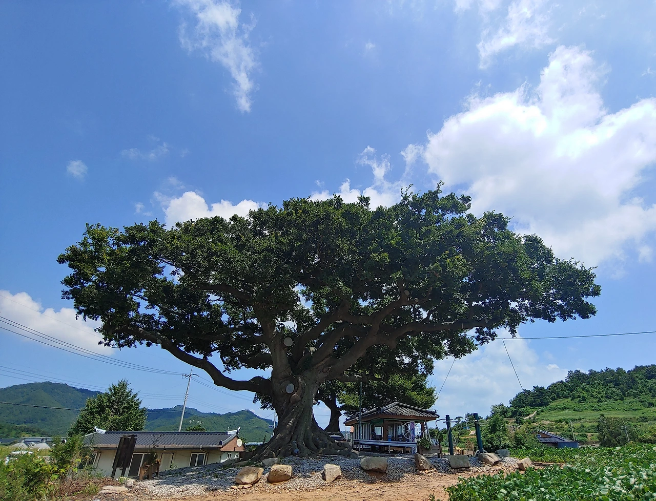 1시간 운전해서 고모할머니도 뵈러 갔다. 아빠보다 열 살 많은 고모할머니(1938년생)가 좋아하는 건 육회와 소주. 동네 할머니들 모여 있다길래 고기를 많이 사고 소주는 박스로 샀다. 할머니는 영화 <서편제>에서 동호와 송화가 판소리 하던 팽나무(수령 450년) 옆 정자에 있었다. 완전 시원하고 기분 좋은 곳이었다.