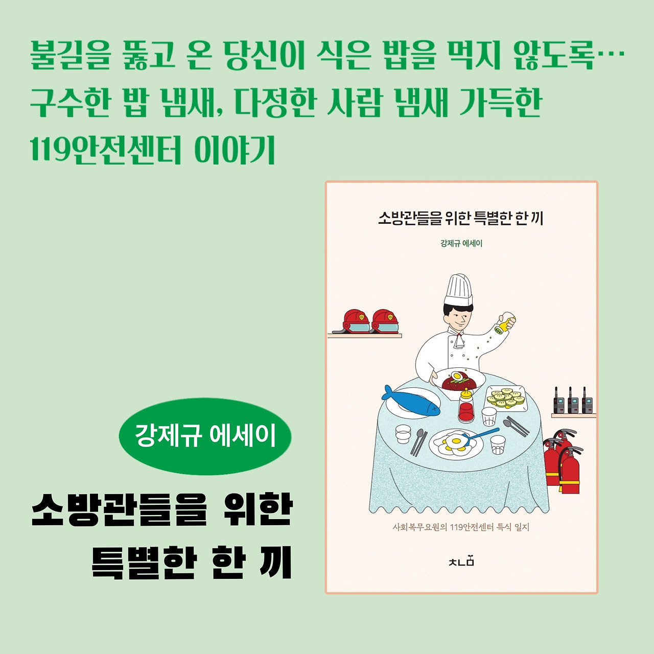 “책 속에 등장하는 요리들이 마치 살아 숨 쉬는 것 같습니다. 요리의 과정, 요리 방법이 안전센터의 숨 가쁘게 돌아가는 업무와 어우러져서, 소방관을 위한 새로운 요리들이 탄생했습니다. 힘든 소방관들을 위해서 5만 원이라는 예산을 가지고 분투하는 요리사의 마음이 느껴져서 좋았습니다.”