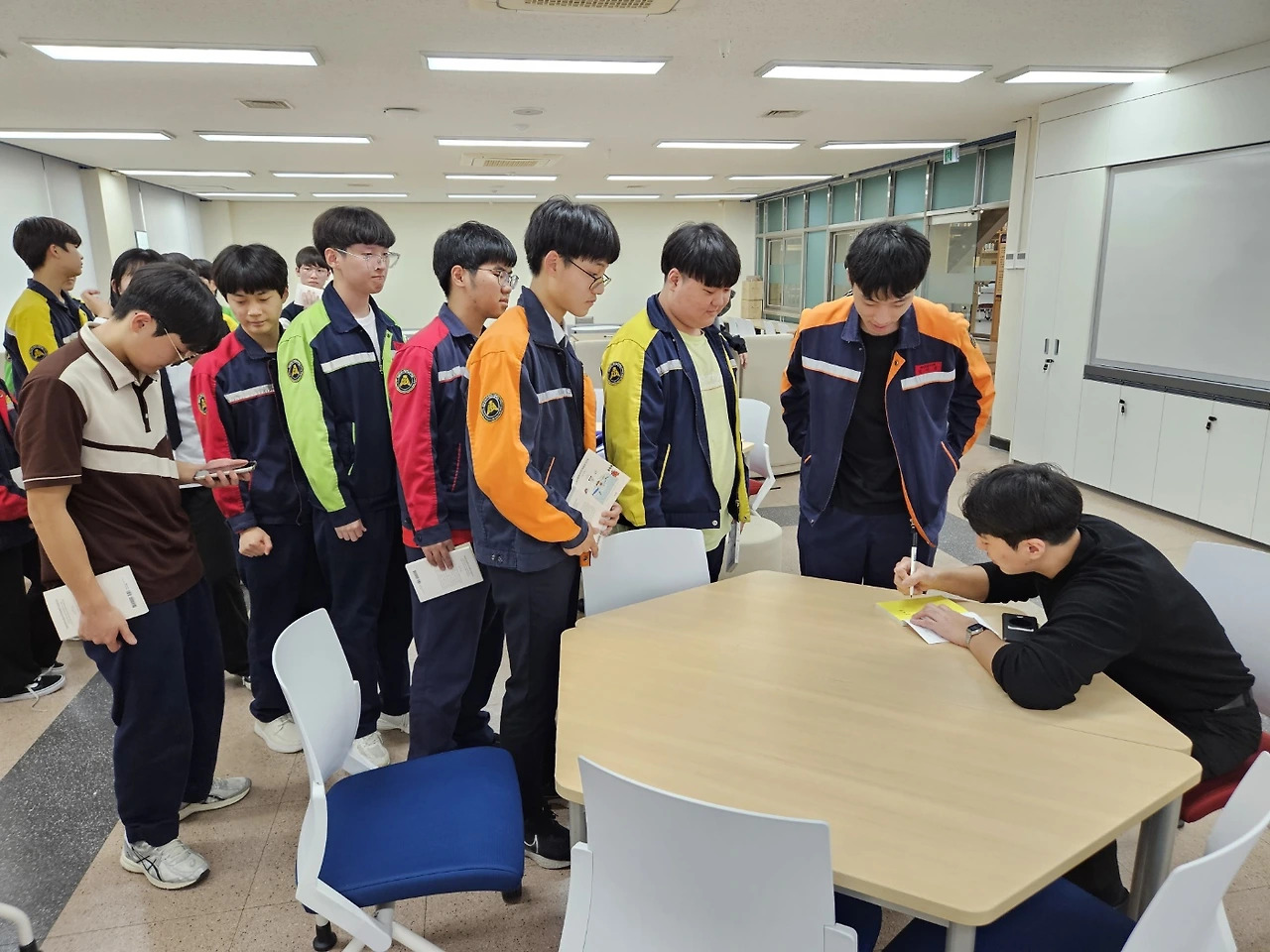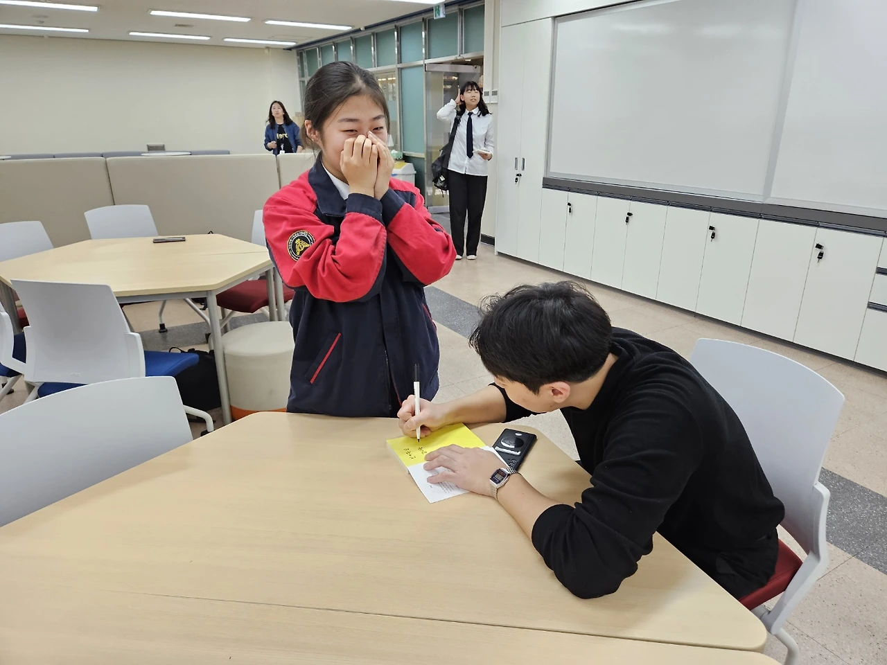 덧붙이는 말) 아이들이 잘생겼다고 넘넘 좋아했대요. 특히 여학생들이 인증샷 찍는다고 남아 있었어요. 안 비밀입니다.”