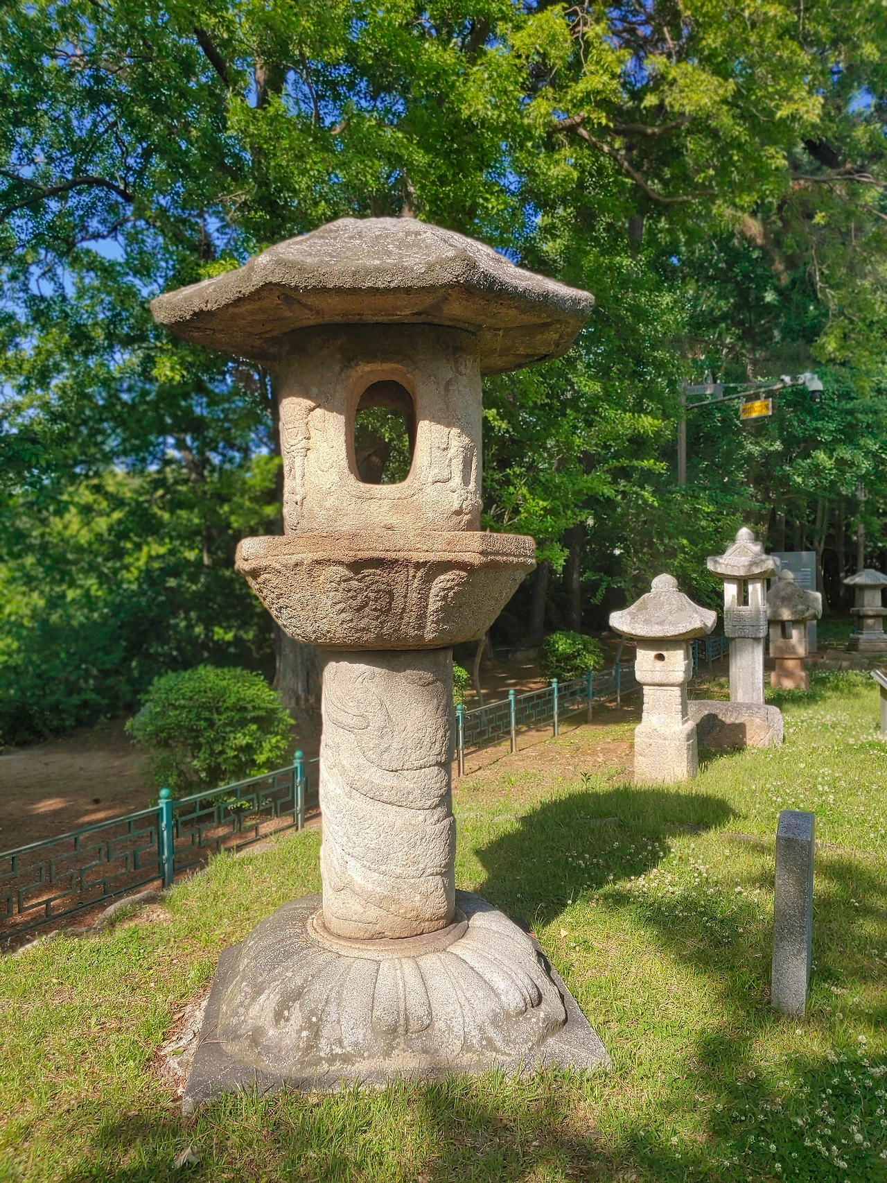 발산초등학교에 있는 오층석탑은 보물 제276호이다. 원래 완주 봉림사 터에 있던 것을 시마타니가 소달구지에 실어서 가져왔다. 고려 시대에 만들었고, 받침돌은 신라의 석탑을 본떴다. 또 발산초등학교 석등은 보물 제234호이다. 간주석에 용이 새겨진 석등은 우리나라에서 유일하며, 더구나 그 안의 용은 개구지게 웃고 있다. 이 아름다운 유산들이 초등학교 뒤뜰에 서 있는 건 군산이 가진 수탈의 흉터 중 일부다.” - 대한민국 도슨트 <군산>, 21세기북스, 배지영