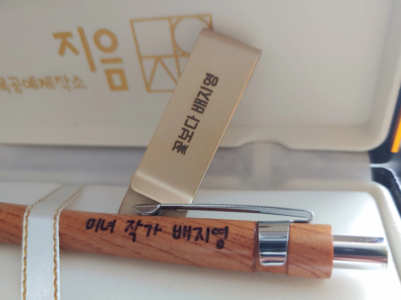 목포에서 오신 서은영 선생님은 내가 앓는 불치병(샤프 두 개 병)을 알고 있었다. ‘미녀 작가 배지영’이라고 새긴 샤프 연필을 선물로 주셨다. 샤프 연필을 머리맡에 소중하게 두고 잤더니 다음 날부터 얼굴에 뭐 바른 것처럼 무게가 느껴졌다. ‘미녀 작가’라는 왕관의 무게를 견디기 위해 뭐라도 해야지. 유통 기한 지난 팩을 꺼냈다. 목표는 1일 1팩.