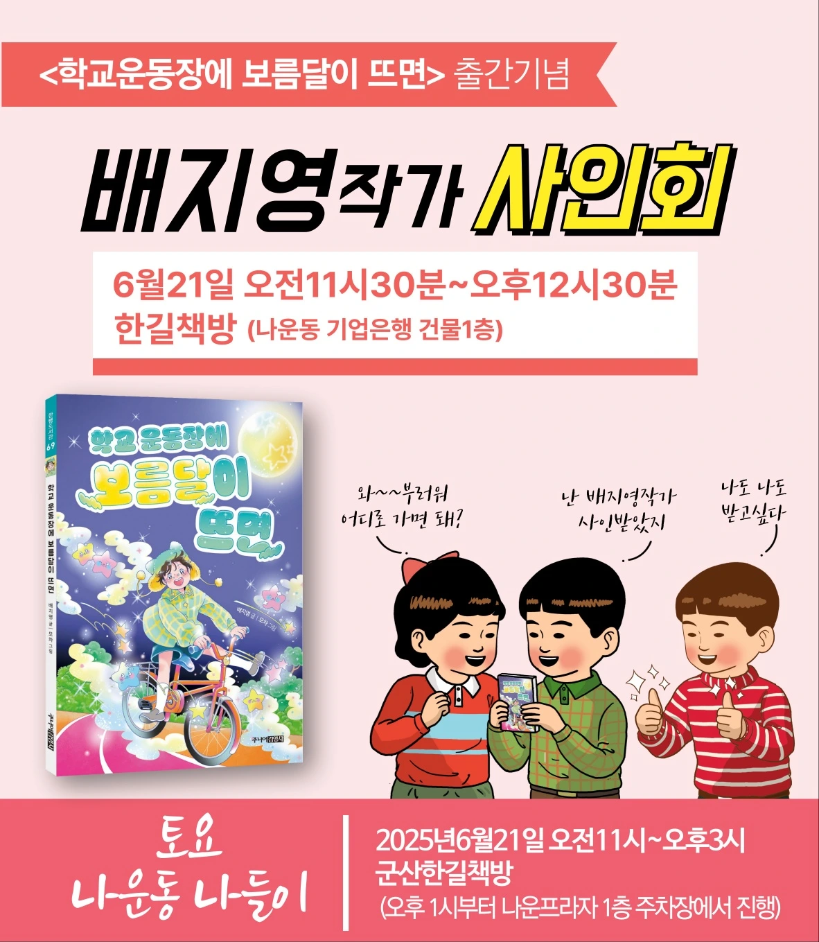 군산에 온 지 25년 만에 첫 책 <우리, 독립청춘>을 펴냈습니다. 으하하하! 중쇄 찍고, 한길문고에서는 베셀 1위를 했어요. 펴내는 책마다 전부 싹 다 한길문고에서 베셀 먹었습니당. 한길문고라는 잘 차려진 밥상 위에 숟가락을 얹은 셈이에요. 군산의 독자님들과 멀리서 일부러 찾아와 주신 독자님들 덕분에 저는 글쓰기 선생에서 한길문고 상주작가로도 몇 년 일했고요.