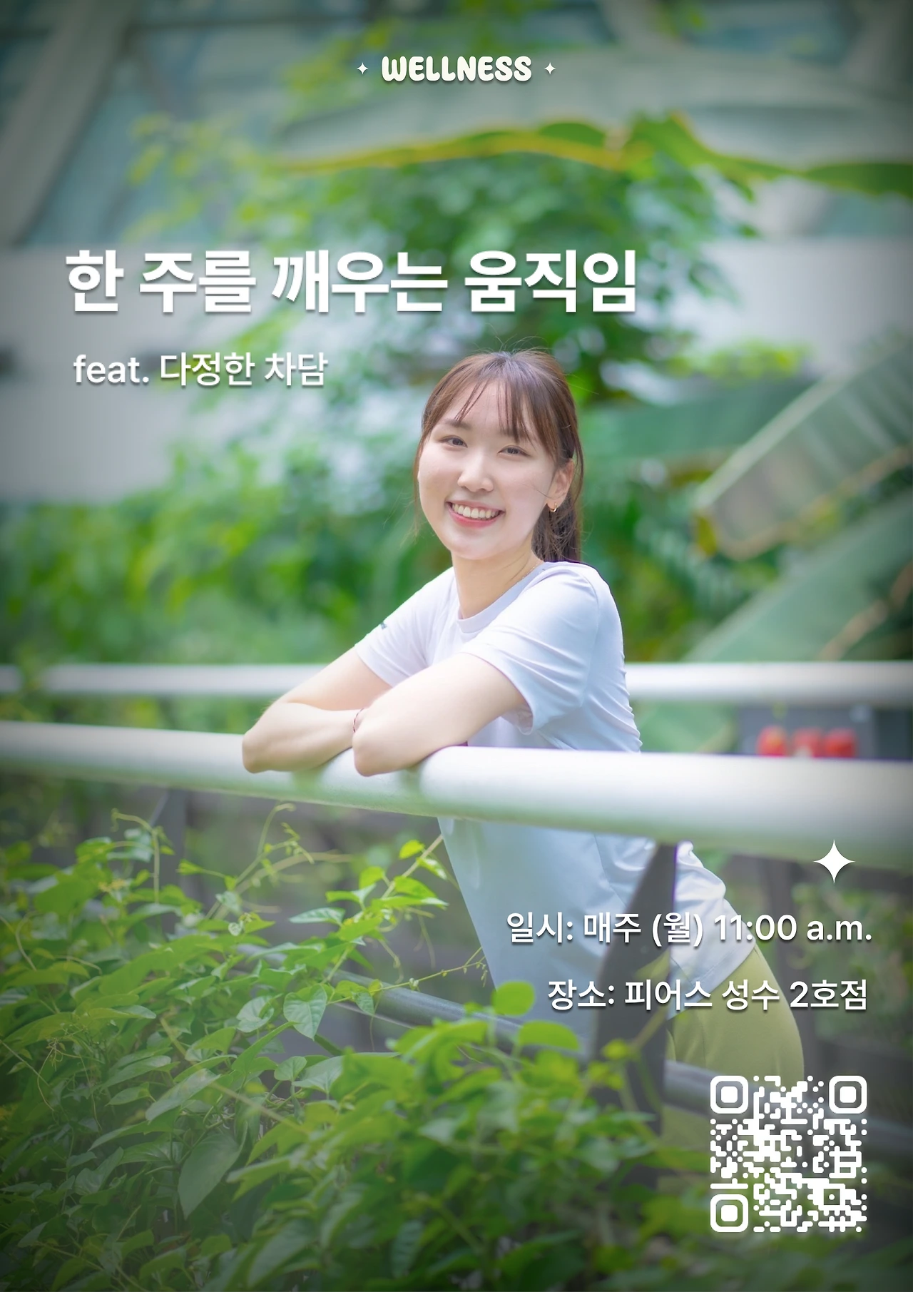매주 월 오전 11시, 피어스 성수 2호점에서 <루프탑요가 이벤트>를 열고 있어요! 누구나 참여 가능하며, 공유오피스 일일체험도 가능하답니다 :)