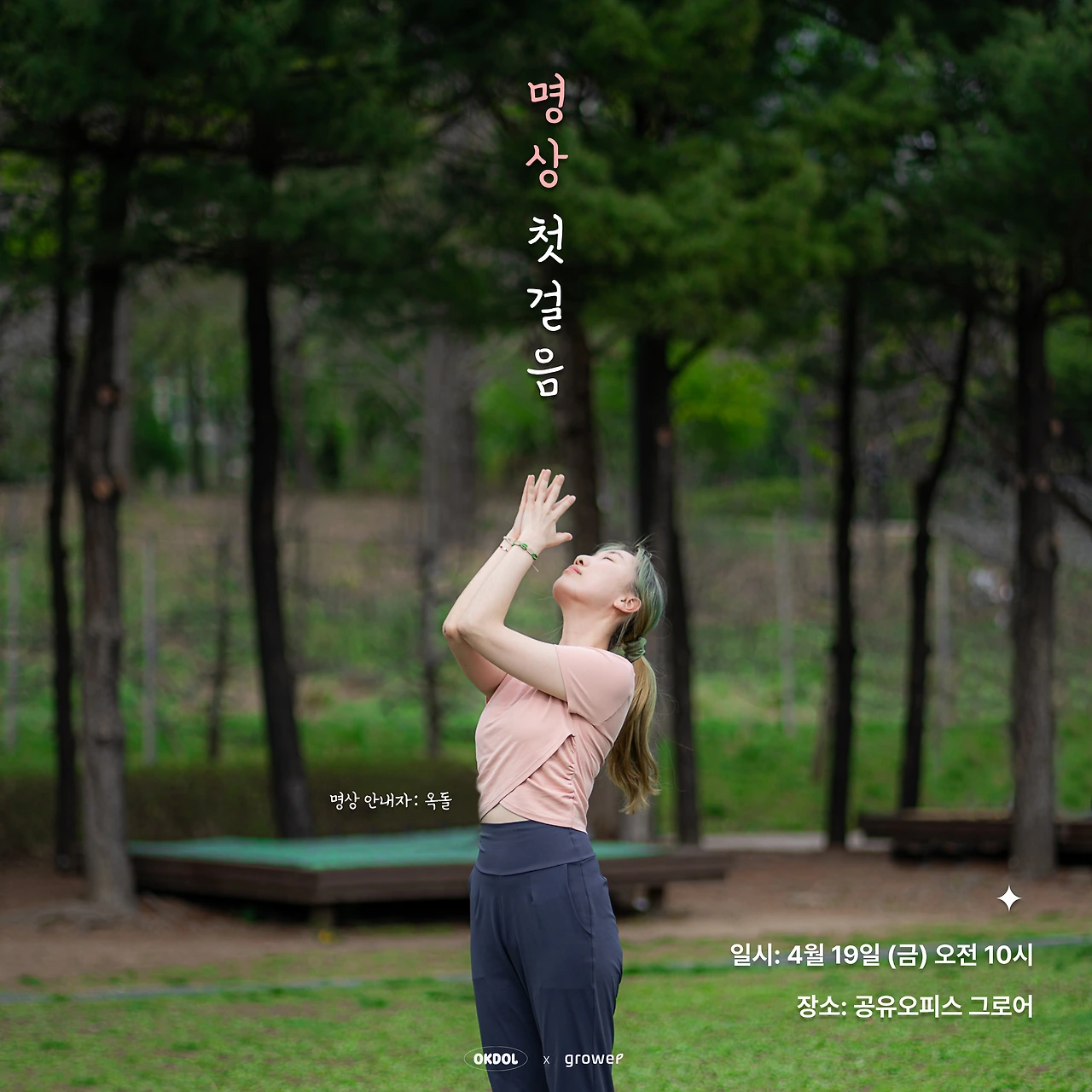 이번 주 금요일(4/19) 오전 10시, 성수 공유오피스 ‘그로어’에서 원데이 명상 워크숍을 진행합니다!