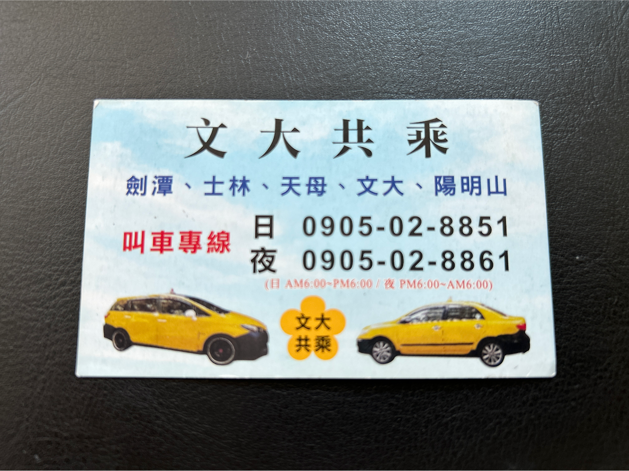 지난 월요일, 대만에서의 첫 종강을 맞이했다. 와! 다음 개강까지 나는 자유다(가 아니고 미뤄뒀지만 해야 할 일이 태산이다). 종강을 맞이하여 학교를 오가며 겪은 일을 좀 적어보려고 한다. 내가 근무하고 있는 학교는 양명산이라는 산 위에 있는 학교인데 이 학교는 서울로 따지면 남산 같은 산 위에 위치해 있는 셈이다. 이 학교의 턱 밑까지 올라와 본 한국 절친의 말에 따르면 남산이 아니고 북한산이라고 한다...; 당연히 도보로 출근할 수는 없고, 버스나 자동차로 올라가야 한다. 대만에 오고 나서 학교에 인사드리러 가는 날은 버스를 탔는데, 환승 1회를 포함하여 50분이나 걸렸고, 무더위에 산을 오르는데 또 기력을 쓰다 보니 너무 지쳐서 올라가서 학과장님께 인사드리기 전 10분 넘게 숨을 몰아쉬며 휴식을 취했다. 그날 나는 학과 조교로부터 '합승택시'에 대한 정보를 들었고, 그 이후 나는 다시는 버스를 타지 않았다. 사실 교직원용 통근버스도 있는데 그 통근버스를 타고 스린역에서 내리더라도 나는 다시 버스를 타고 집으로 돌아와야 한다. 그래서 한 번도 이용한 적이 없다.