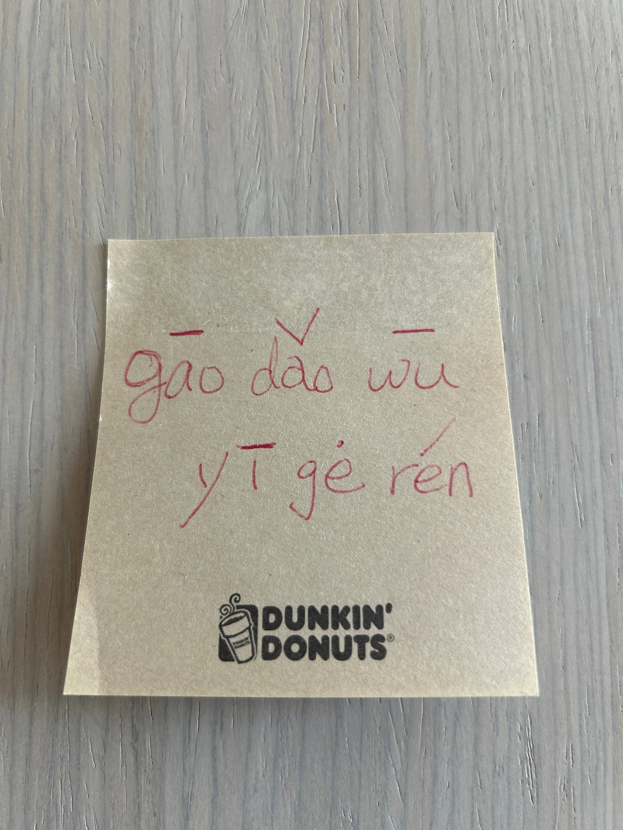 그런데 그들은 대부분 '이거런' 대신 '이웨이'를 사용해서 나를 당황시켰다. 얼핏 들으면 'way'로 들려서(사실은 한어병음으로 wei) 처음에 들었을 때에는 뭐 다른 길로 가라는 건가.. 다른 방법이 있다는 건가.. 그런 생각도 들었다. 그들이 나한테 갑자기 영어를 사용해 뭔가를 설명하지 않았을 텐데도 말이다. 중국어에서 一의 발음이 '이(yi)'라서 안 그래도 이게 '하나'인지 '둘'인지 헷갈리는 마당에 양사(量詞)가 바뀌니 내가 또 뭔가를 잘못했는지 소심해졌다. 나중에 중국어 선생님한테 물으니 이건 아마도 '좌석' 정도의 의미인 거 같다. 내가 한 사람이라고 말하는 것을 알아듣고 '한 자리' 이렇게 말하는 것이고, 식당에서도 몇 명 왔다고 물어봤을 때 '세 사람이다'라고 답하면 '세 자리'라고 표현하는 것이라고 한다. 기억을 더듬어 보니 양명산에서 택시를 기다릴 때 택시 기사가 이웨이(一位), 량웨이(两位)라고 말하며 '몇 좌석이 남았으니 혹시 한 명이거나 두 명이면 와서 타시오..'의 뜻으로 '웨이'를 말한 것이라는 깨달음을 얻었다. (수업을 더 들어보니 웨이는 그냥 높임 표현인 것 같다. 고객은 높여야 하니까)한국어도 그렇지만, 중국어에도 양사가 매우 많은데, 솔직히 그 모든 양사의 한자의 뜻을 알고 있을 정도로 내 한자 실력이 출중하지도 않고, 용례가 한국어와 동일하지도 않아서 무척 어렵다. 하지만 이해는 한다. 한국어에서도 '꽃 한 송이', '꽃 한 다발' 이렇게 말하지 않고 '꽃 한 개'라고 말하면 꽃이 덜 예뻐지는 기분이니까.. 커피를 주문할 때에도 '이거 카페이' 대신에 '이베이 카페이'라고 말해야 한다. 한국어로 치환해 생각해 보자. '커피 한 개'보다는 '커피 한 잔'이 더 분위기 있어 보이니까. 외우자.. 양사. 이지비(一枝筆, 펜 한 자루), 이번슈(一本書, 책 한 권)...