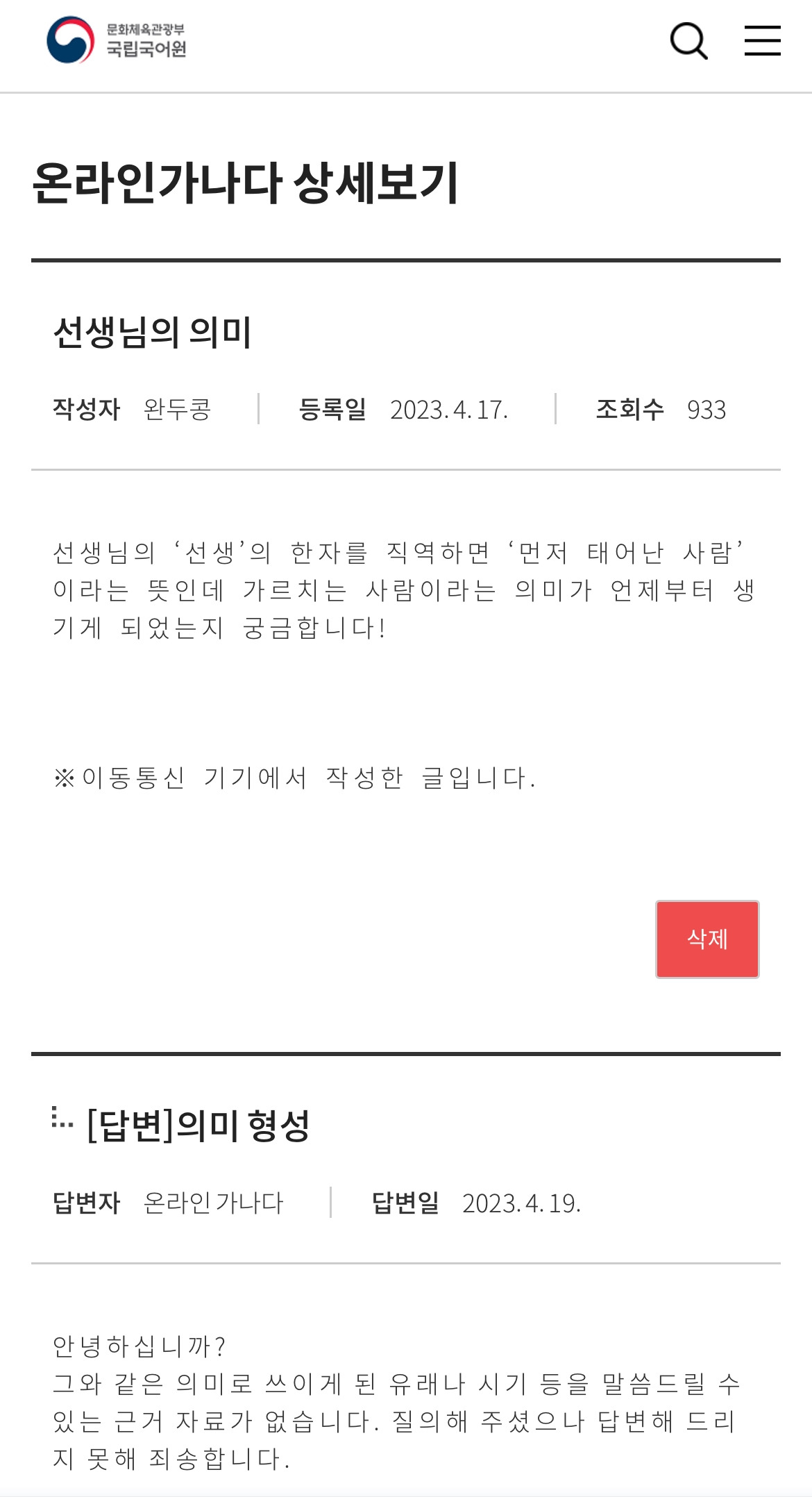 先生。가르치는 사람이라는 의미로 쓰이게 된 유래를 국립국어원에서조차 알 수 없다고 한다. 과거의 나는 나의 선생이다. 나는 과거의 나로부터 많은 것을 배운다. 선생도 선생이 되기 전에는 학생(學生)이었다. 배우는 자의 ‘先生’이다. 나의 先生이 학생들에게 도움이 되는 先生이 되고, 나는 그런 좋은 선생님이 되고 싶다. 내가 그런 先生일 때 비로소 존칭의 표현을 붙일 수 있는 “선생님”이 될 수 있는 것이 아닐까. 그리고 좀 더 의미 있는 ‘먼저 산 삶’이 되기를… 학생들의 졸업 사진을 찍으며 생각해 보았다.