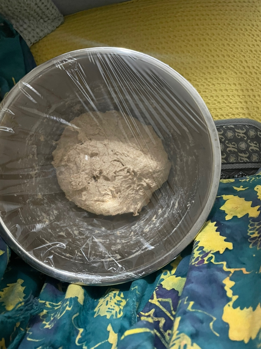여유롭게 늦잠을 잔 나는 의도치 않게 반죽이를 12시간 정도 발효시켰다. 반죽이는 발효의 마법이 더해져 기포가 형성되고 있었다.