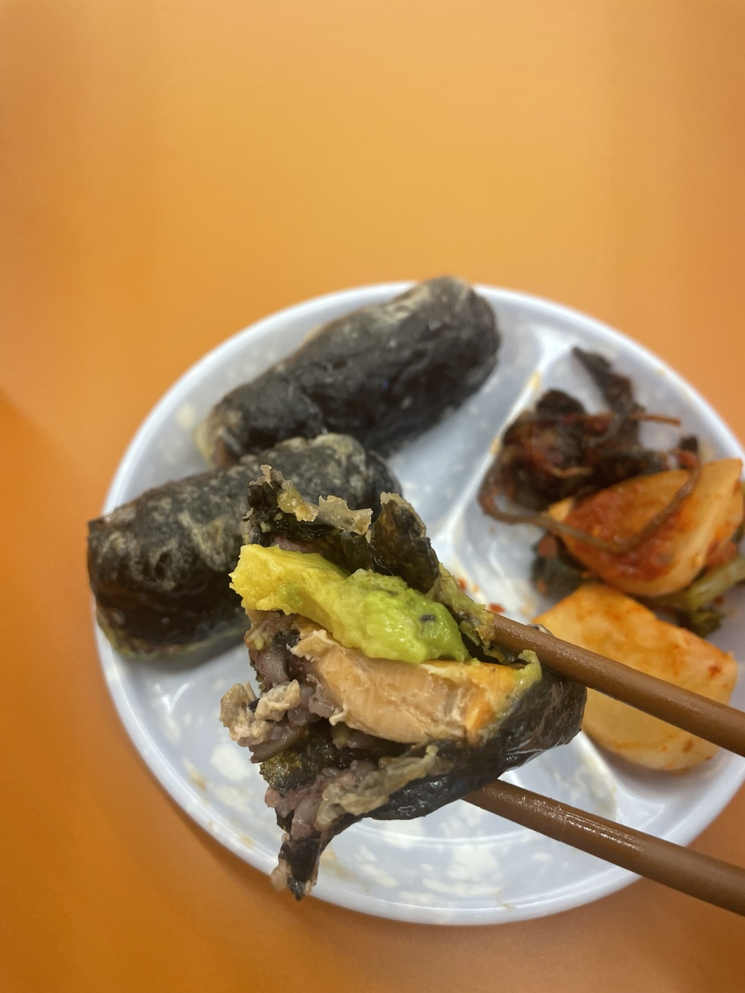 두 번째 주먹밥을 만들 땐 연어와 아보카도를 넣고 마요네즈와 알싸한 고추냉이를 섞어 함께 말아내었다. 간장이 한식 느낌이라면 이건 정말 양식 느낌의 주먹밥이랄까? 연어와 코찡한 맛의 고추냉이 궁합을 그대로 느낄 수 있다. 월남쌈 피와 김은 조용히 도울뿐. 전체적인 맛을 크게 방해하지 않는다.