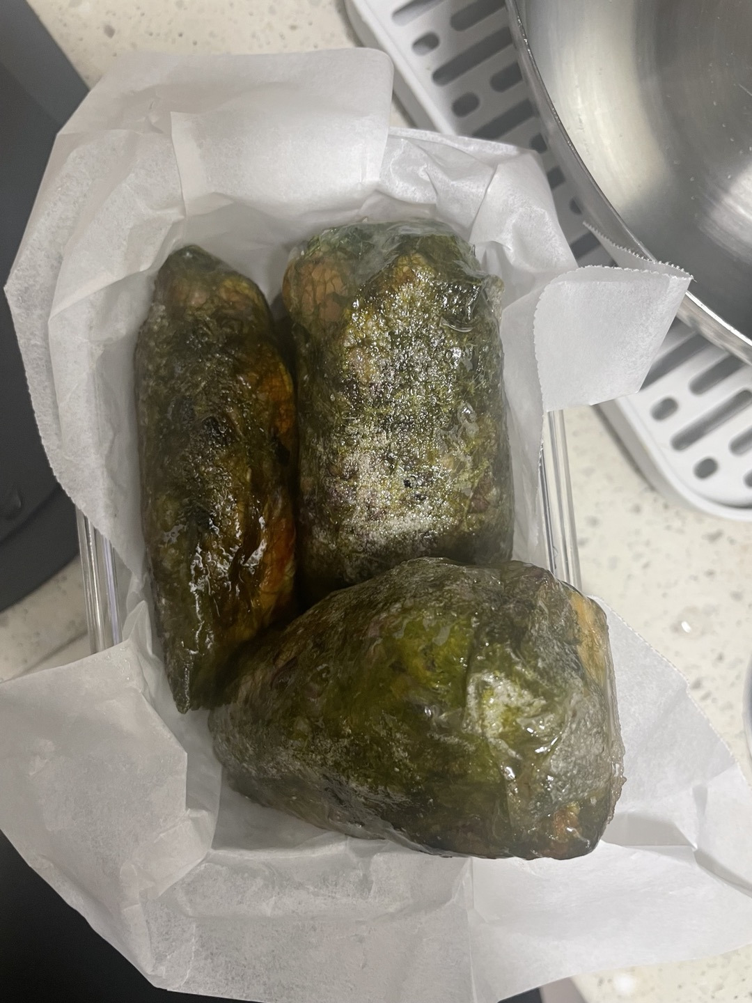 안에 들어가는 부재료는 내가 원하는 재료를 선택해 나름대로 새로운 주먹밥을 만들어볼 수 있었지만 그래도 가장 잘 어울리는 재료를 넣어 만들어주셨을 테니까 일단 첫 번째로 만들어보는 주먹밥은 그대로 속재료까지 따라가 보자. 속재료를 어떻게 밑간 하셨는지 모르겠지만(그렇게까지 예민한 입맛이 아니다 보니) 재료에 따라 어울린다고 생각하는 느낌으로 간해보기로 한다.