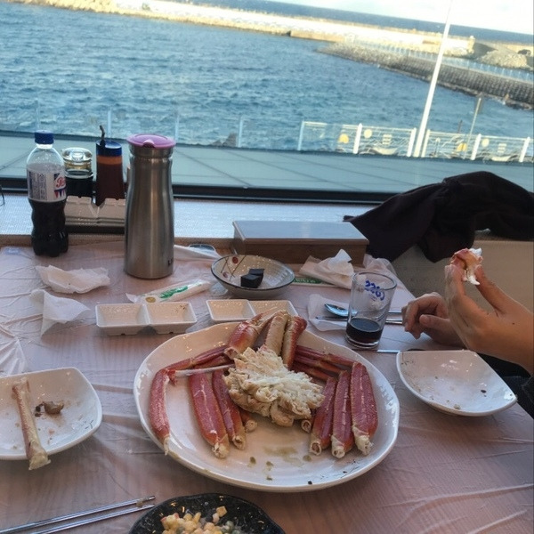 거진항에서 식사 때를 놓쳐 멘붕이 되고, 급기야 당 떨어져 미친 듯이 속초로 복귀해서 눈에 보이는 대게집에 방문했다. 대게를 먹기 좋게 잘라줘서 편하게 먹었다. 물론 창 밖에는 바다가 카펫처럼 쫙 깔려있다. 대게는 대게다. 맛이 없는 것이 불가능하다.
