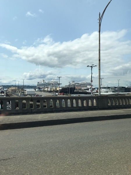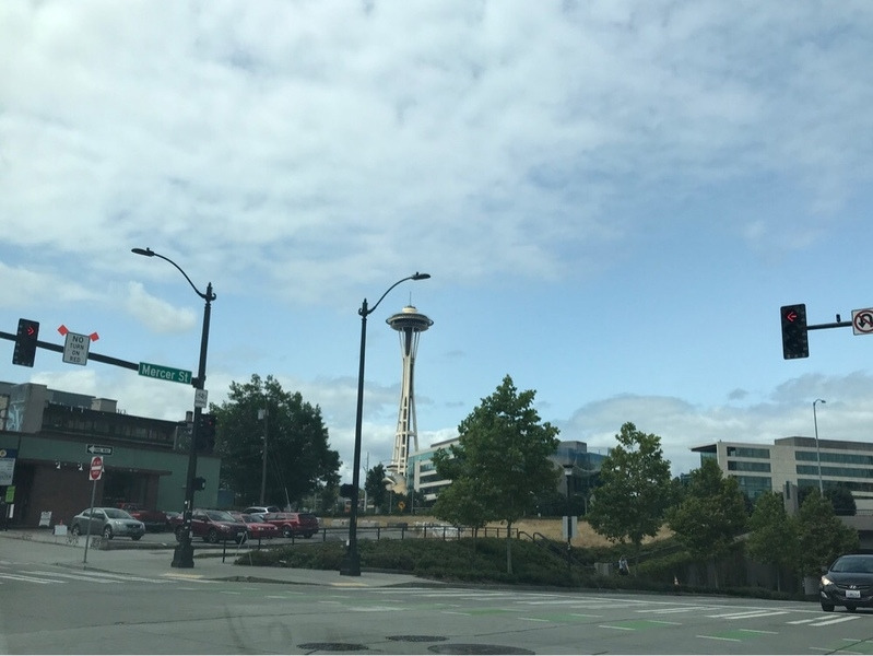 알래스카행 크루즈선을 타기 위해 아침 일찍부터 워싱톤주 최남단 밴쿠버시를 출발해 시애틀 항으로 이동했다. 캐나다의 미항 밴쿠버시와 똑같은 철자와 이름을 가진 도시가 워싱톤주 최남단에도 있다. 밴쿠버 워싱톤에서 I-5 고속도로를 타고 북쪽으로 약 3시간가량 부지런히 운전하면 시애틀에 도착한다. 안 막힐 경우에 말이다. 대략 서울-대구 정도 거리 보면 되겠다. 시내에 들어서니 시애틀의 상징인 스페이스 니들(Space Needle)이 우리를 반긴다.